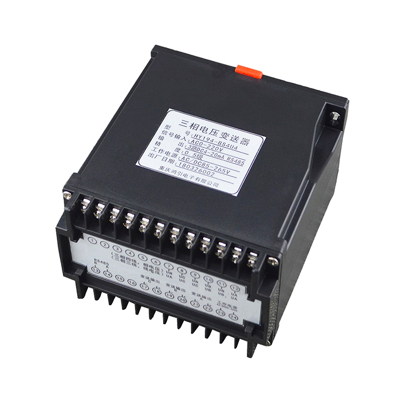 三相電壓變送器,通過專用電量芯片采樣,CPU 數字化處理,真有效值算法,高精度的測量三相電壓,隔離轉換成線性直流標準模擬信號輸出或RS485數字通信接口輸出。模擬量可選:DC0~20mA、DC4~20mA、DC0~5V、DC1~5V、DC0~10V等變送輸出;RS-485數字通訊接口,采用國際標準MODBUS-RTU通訊協議,可與各種PLC、HMI、組態軟件實現組網。