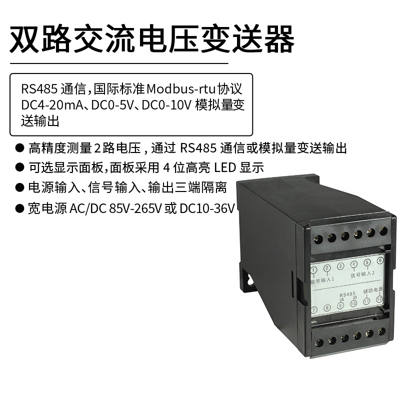 雙路交流電壓變送器 RS485 Modbus-rtu通信